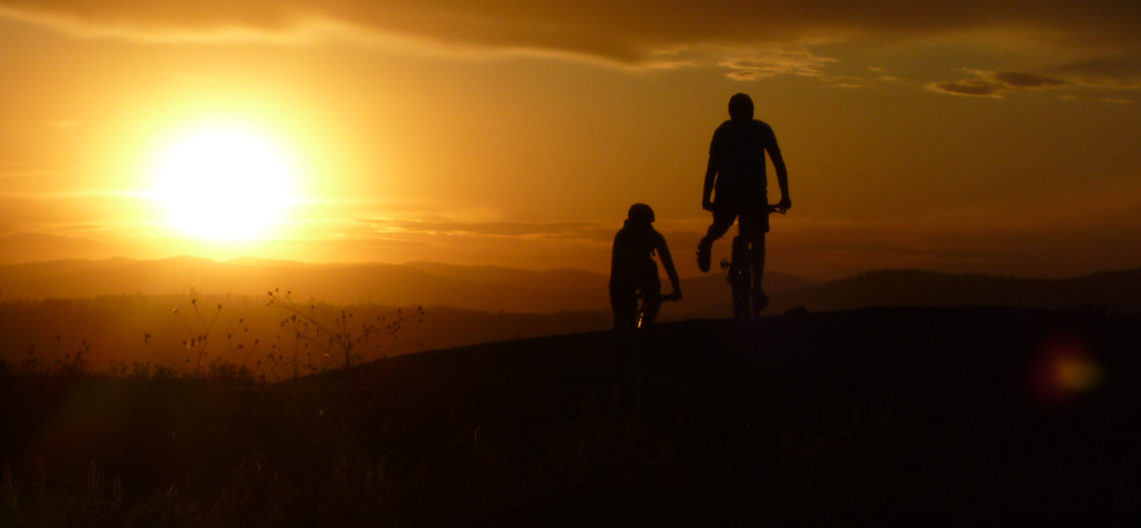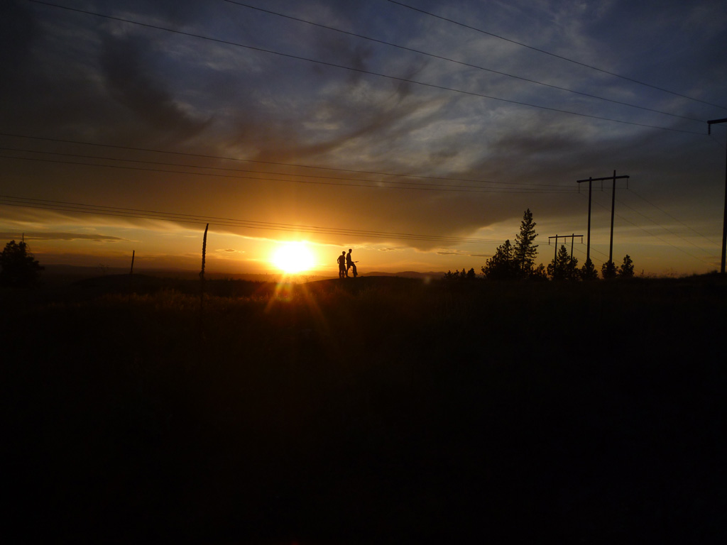 Mountain bikers at sunset, Beacon Hill, Spokane County (two photos):